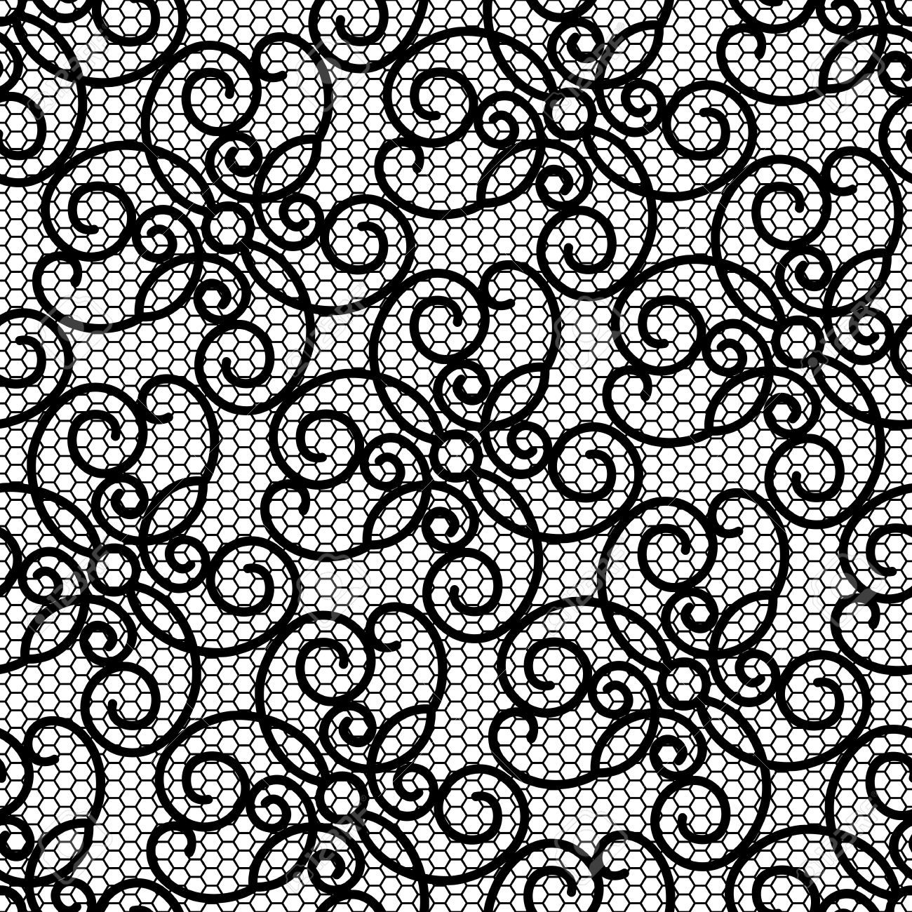 Patrones Transparentes De Tela De Encaje Negro Con Rizos Imagen de ...