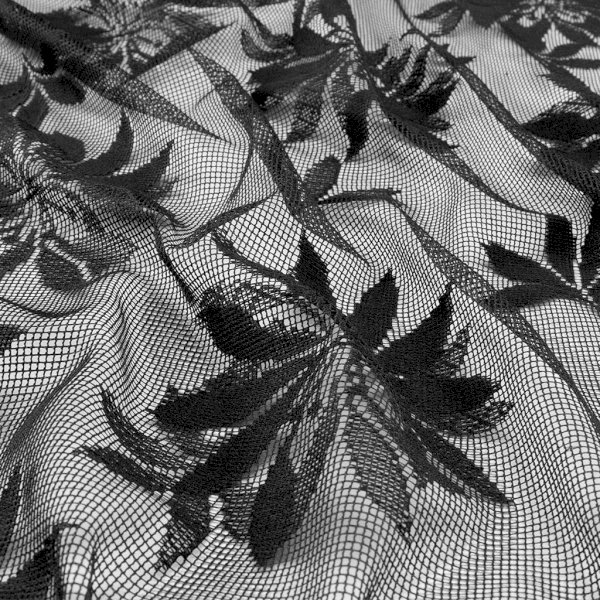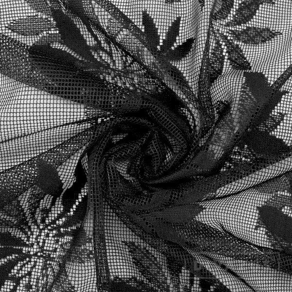 Sagre, Tela de encaje en patrón, color negro, semitransparente ...