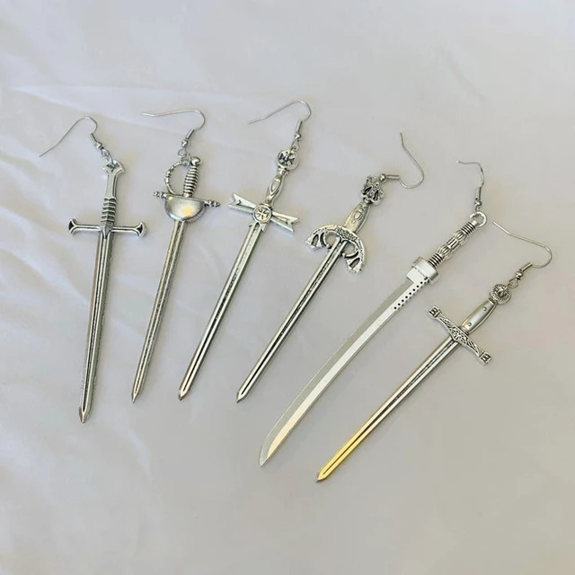 Pendientes de espada de color plateado, aretes clásicos, todo tipo de espadas grandes, joyería de moda,