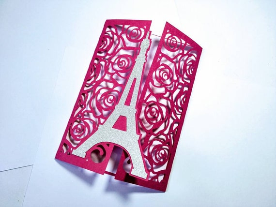 Torre Eiffel Rosas Invitación de boda SVG Plantilla Puerta Fold ...