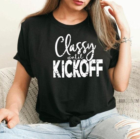 Camisa con clase hasta el inicio / Temporada de fútbol para damas Top Adulto Equipo de otoño Fanático de los padres Ropa de moda Traje Regalo Fútbol universitario de la escuela secundaria