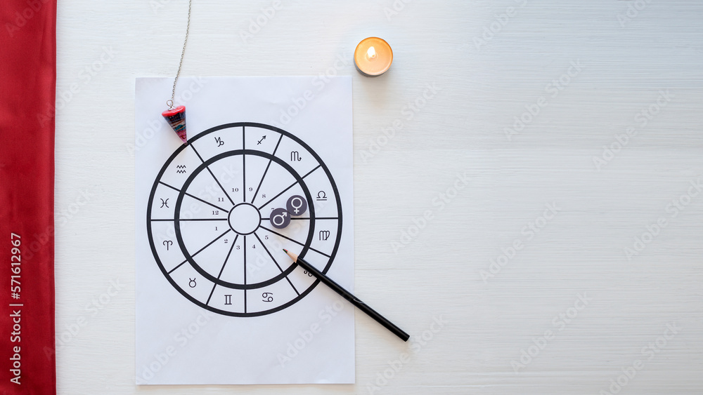 Carta astral con símbolos de Venus y Marte sobre fondo blanco ...
