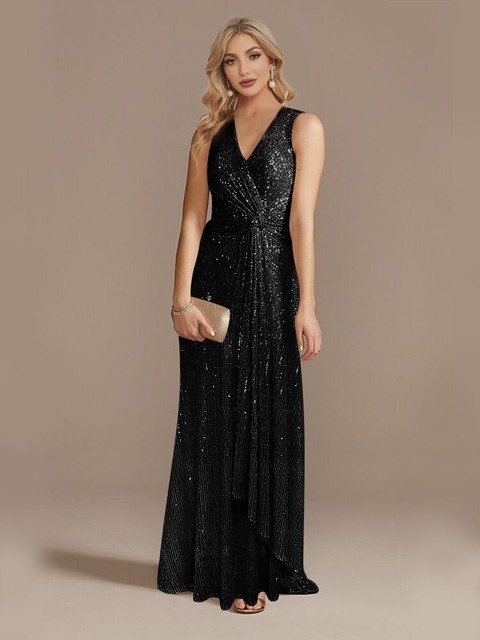 Vestido de fiesta o de noche, color de lentejuelas negro o dorado ...