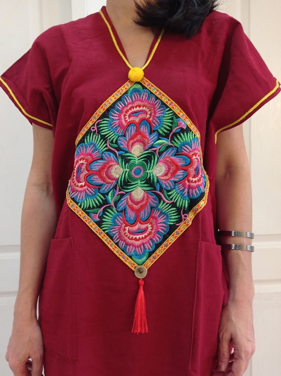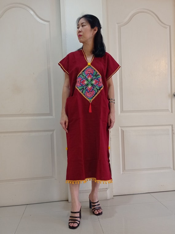 Vestido de algodón lanna roja tailandesa vintage, vestido de ...