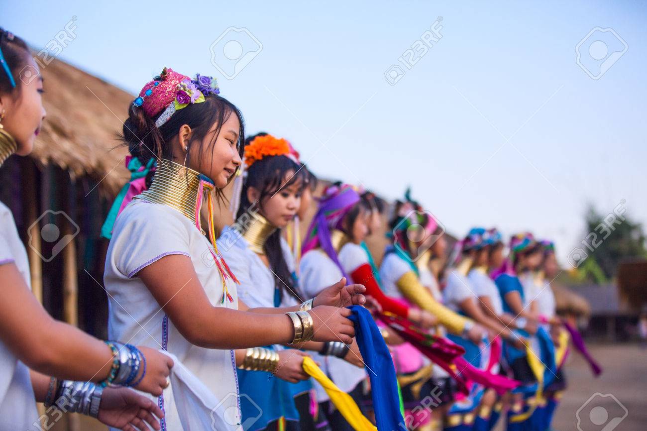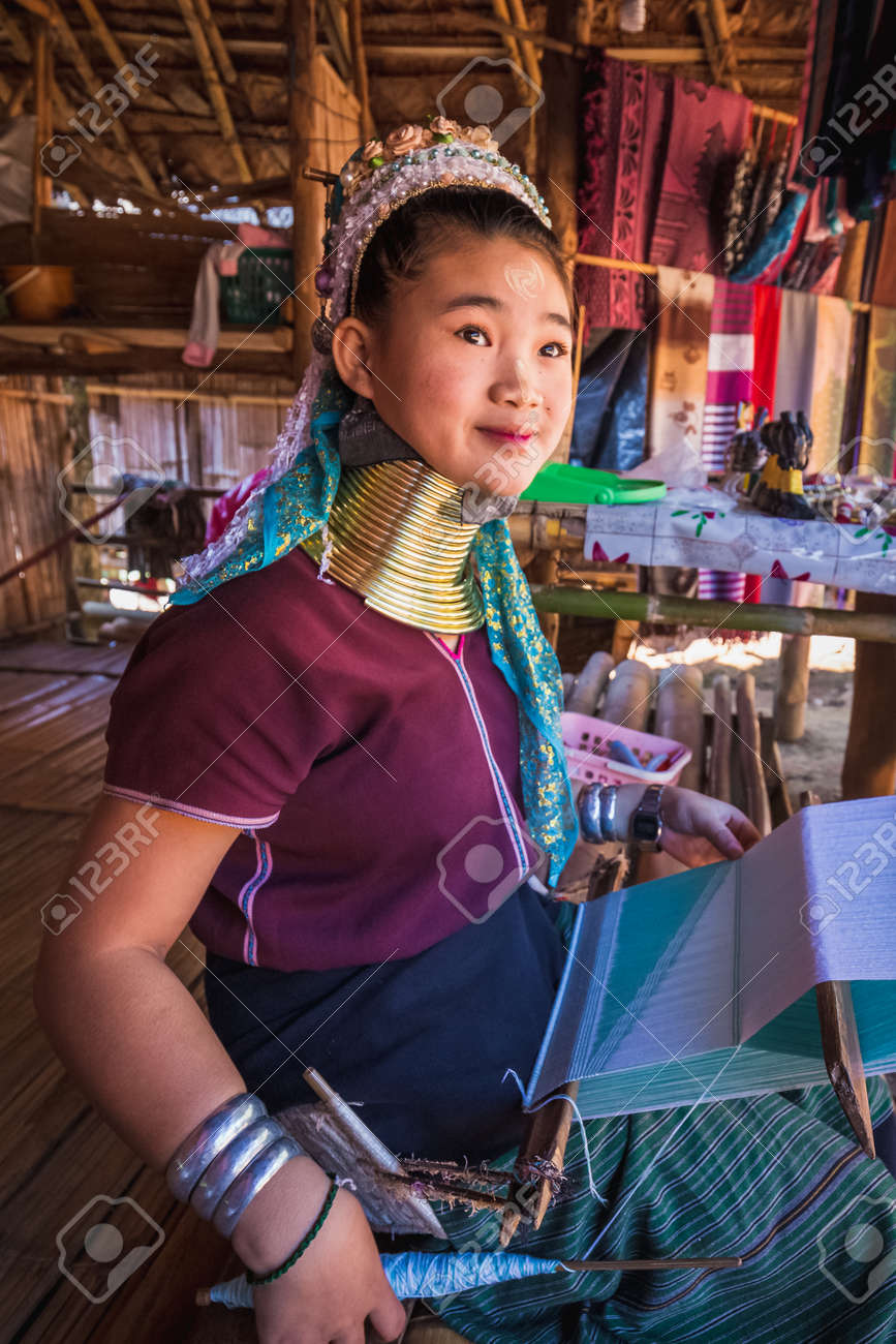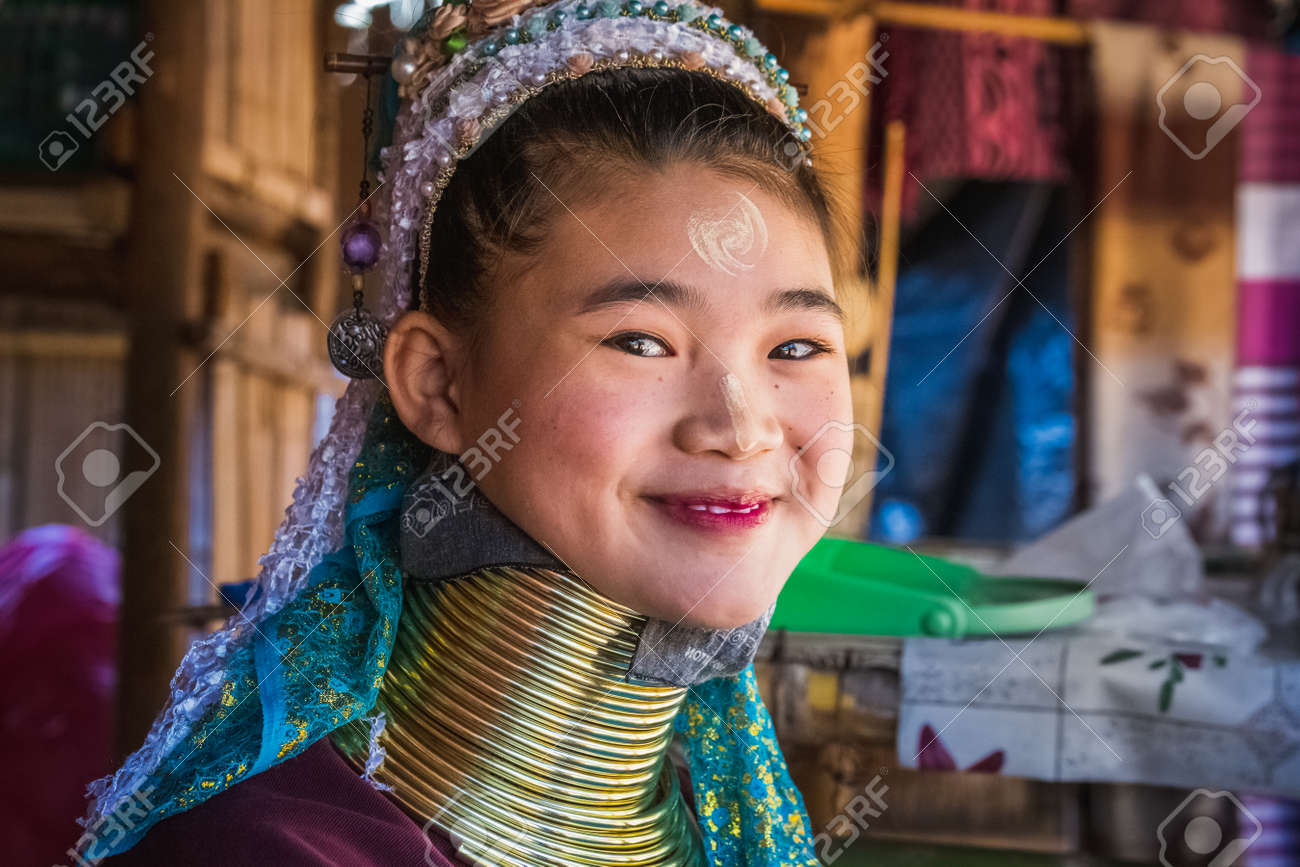 Retrato De La Mujer Larga Del Cuello En Traje Tradicional Tribu ...