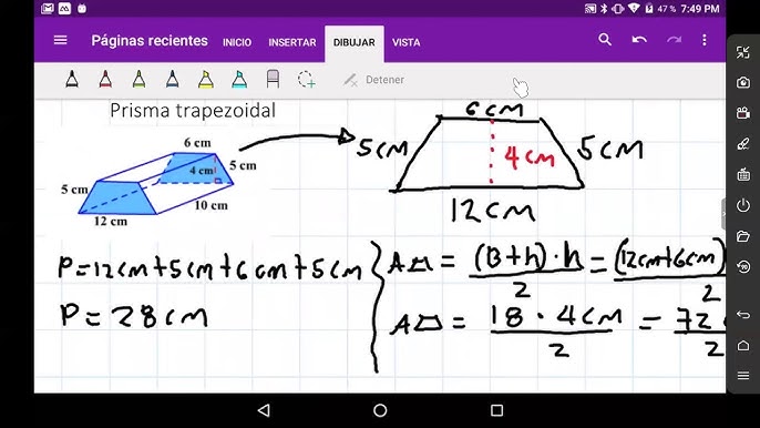 Área superfcial y volumen de un prisma trapezoidal
